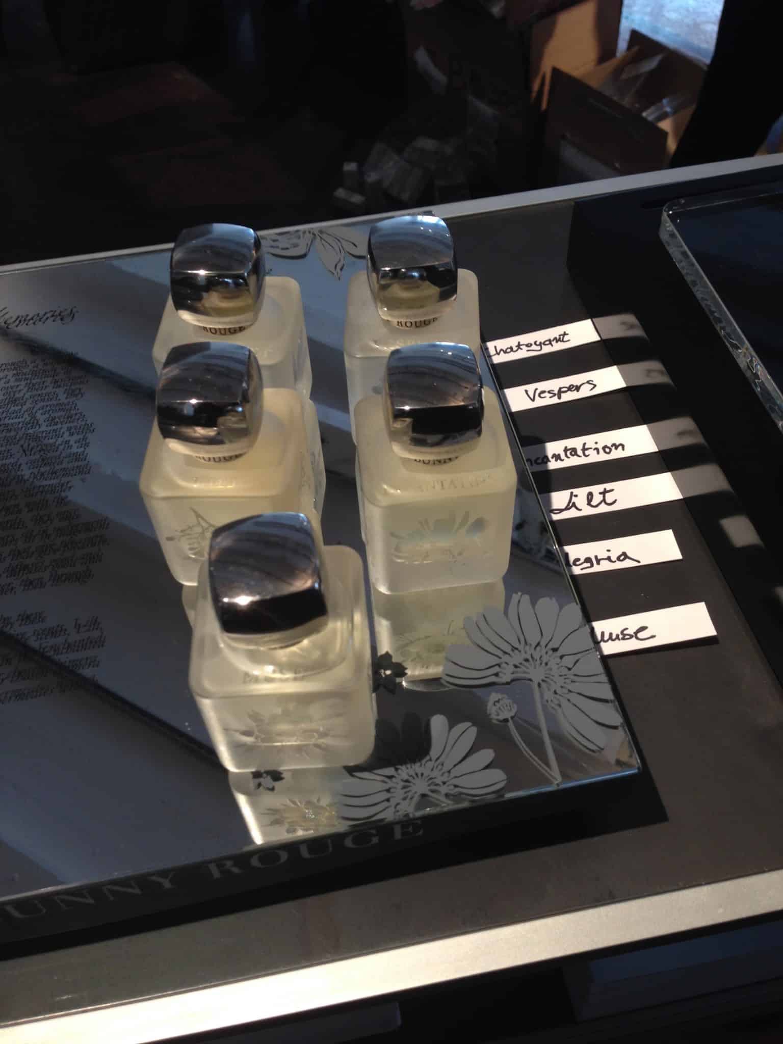 Lalique Parfums fragrances and beautiful crystal display table