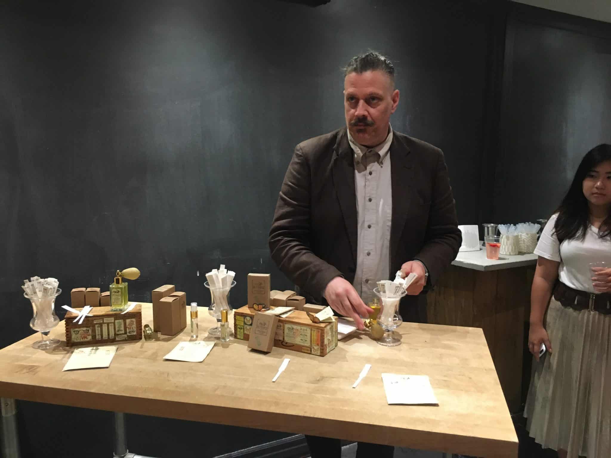 Stephen Dirkes, the founder of Euphorium Brooklyn, is the newest perfumer to join FlowerSchool New York’s esteemed faculty. He gave a detailed overview of his eight-part foundation course, The Perfume Library, which will provide students with the tools they need to create a perfume from each of eight different fragrance families. Stephen premiered his newest perfumes