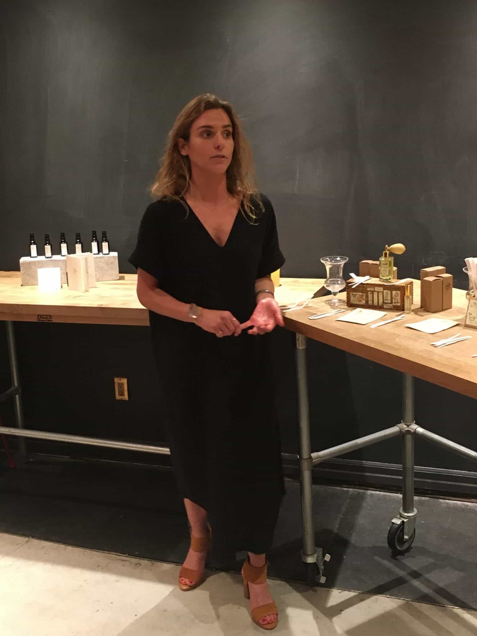 Michelle Gagnon, the founder of MKG Bio Alchemy, specializes in essential oils for skincare, marrying scent and therapeutic properties of natural oils from herbs, flowers, roots, fruits, and resins. She presented her newest product, Face Oil, and discussed her creative process and her work at Enfleurage, the well-known fragrance boutique, that takes her around the globe in search of world’s most exciting natural oils.